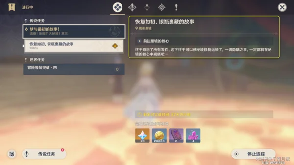 任务奖励:原石*20,摩拉*20000,大英雄的经验*2,精锻用魔矿*4;