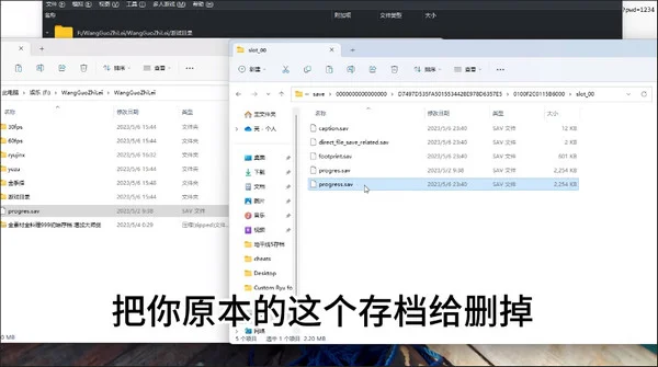 然后我们把刚刚解压的完美存档复制到这里来,这个是比原版的存档多一个s的,s删掉然后加上后缀名也就变成【progres.sav】替换掉游戏原来的存档
