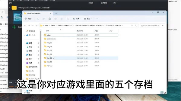 回到刚刚打开的存档位置云,像这里有slot_00、01就可以了,每个序号文件夹对应一个存档位置