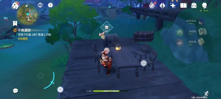 「千奇澴回」作为传统项目,需要根据暗语的提示来寻找宝藏,见证他人的故事。第一段暗语所提示的藏宝地就位于下图所示位置的餐桌,我们只需要坐在这张桌子旁,旁边就会出现一个普通的宝箱。