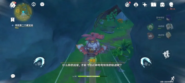 经过一路跟随,第一个水形幻灵最后会移动到图示位置的空中小岛上,此时靠近后对话让其