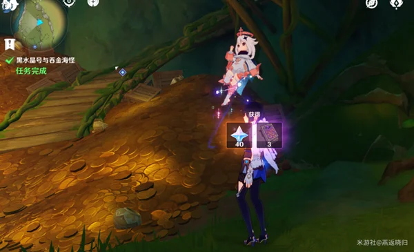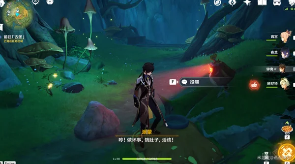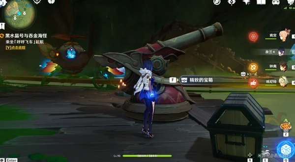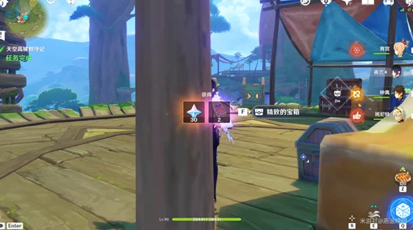 我们跟着提示完成灯的收集挑战,然后打败丘丘人,最后和大喇叭对话,对话完就可以完成这个第一分支的任务啦,可以获得30原石+1个精致宝箱:开启后获得10原石+剧目海报-[天空高城]