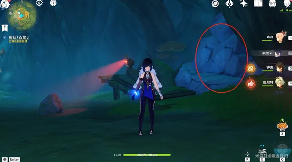 到这里没有箱子的时候,需要我们打破旁边的石头,遮挡的箱子在里面