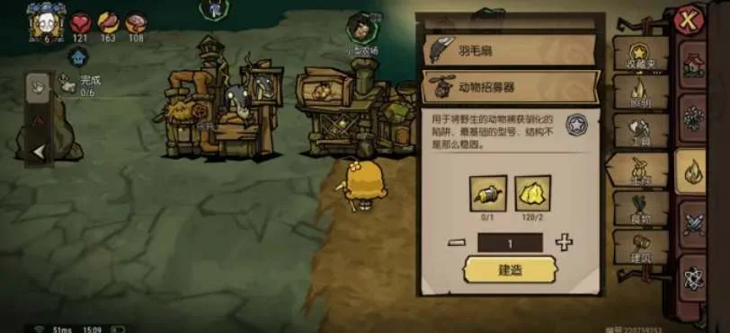 4、玩家在沙盒世界中找到需要的动物,然后在动物旁边打开背包使用动物捕捉器,选择动物就可以被捕捉和传送了,捕捉动物后它会工作6天,工作完成后会自动消失。