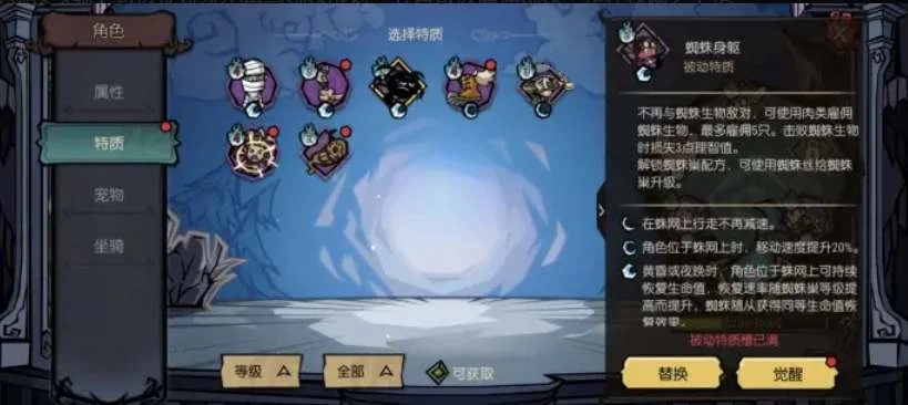 2、特质分为【主动特质】和【被动特质】,主动特质是一个技能,在装备后需要手动释放,被动特质在装备后会自动生效;