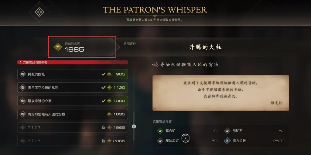 3、在其中就可以查看到当前的名声值,以及目前解锁的物品和奖励。