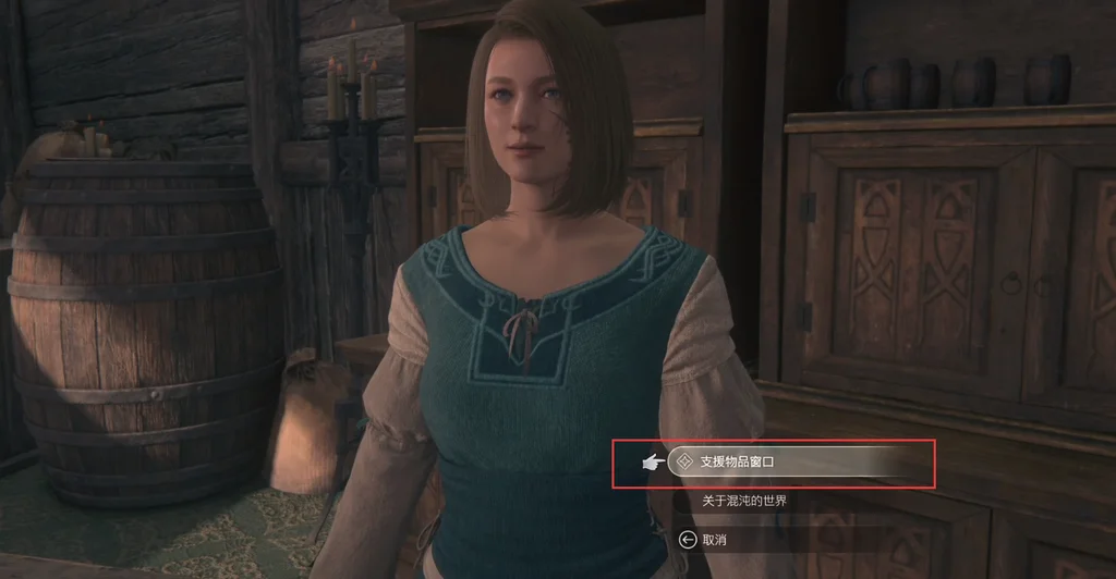2、提升到一定数值后,前往基地的代书德希蕾处,选择“支援物品窗口”