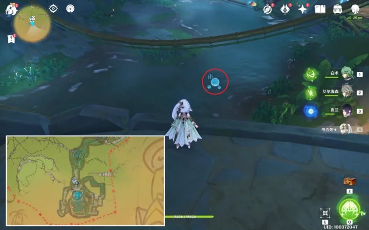 6,在中途可以找到一个幻灵,我们击败旁边的丘丘人,之后跟随幻灵前进