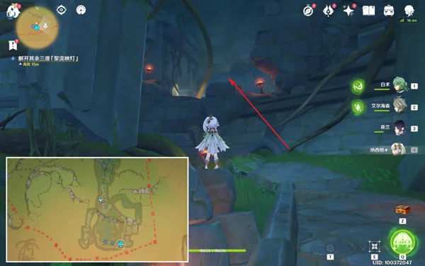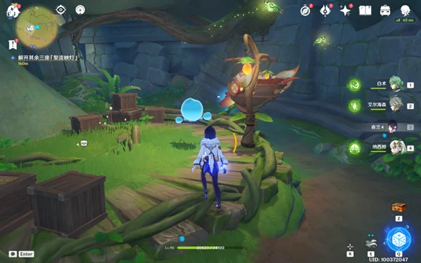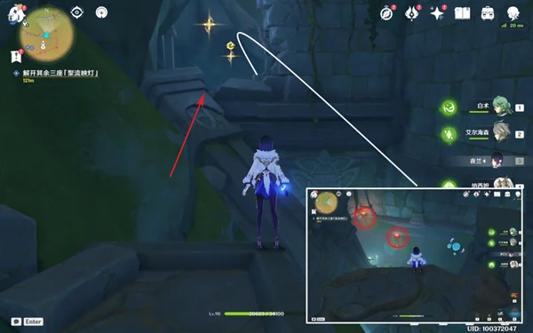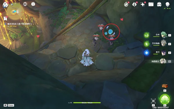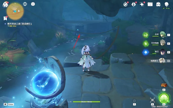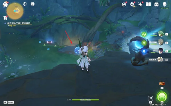6,在中途可以找到一个幻灵,我们击败旁边的丘丘人,之后跟随幻灵前进