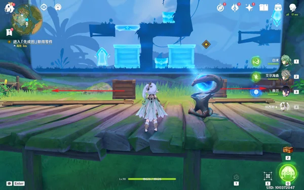 4,然后使用旁边的聚流映灯,进入先成图,开启宝箱后,离开先成图