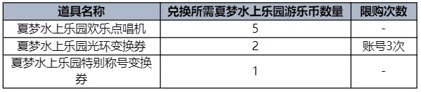 - 可通过消耗夏梦水上乐园游乐币兑换奖励