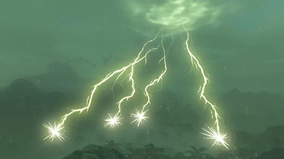 3、这个时候天空会出现闪电,劈到龙之石上,天空的云团也慢慢散开,出现了一座新的岛屿。