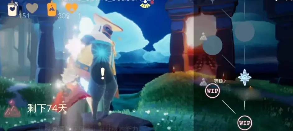 1、新地图向导先祖位置往左侧飞可以看到巨石林立的区域,顺着山洞一直往里飞,在中间的石柱后面可以找到第一位季节先祖。