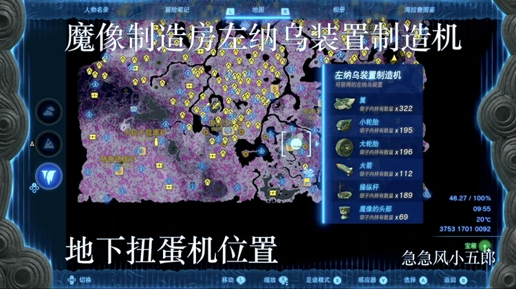 向左纳乌装置扭蛋机投入左纳乌能源、大的左纳乌能源、兵队魔像的角、队长魔像的角等会掉出装置零件 如果放入其他素材则无法使用且投入的素材会退回