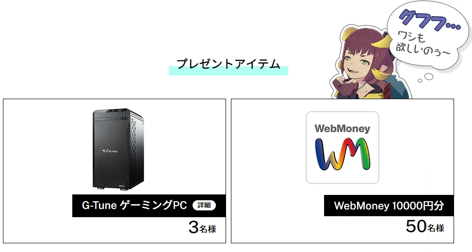 关注官推https://twitter.com/BLUEPROTOCOL_JP并添加标签[#ブルプロ_正式サービス6月14日決定]并@官推(@BLUEPROTOCOL_JP),抽取500人赠送1000日元的亚马逊礼品卡。