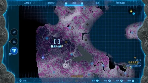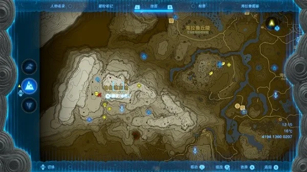 大地图位置如下,推荐从左边的马兹兹欧传送点存档,然后直接滑翔过来,可SL。地图的名字设计很有意思,地上和地下的位置相同,但名字刚好是倒过来的,