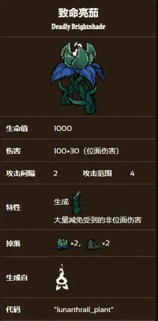 5.裂隙会伴随致命亮茄的生成,打掉就可以得到亮茄外壳,先打钻地藤蔓,在打亮茄7下走位,1000血量值,不会回血,可以慢慢打。生成信息:在击败天体英雄后地图上随机生成的裂隙达到最大阶段后,会每隔 2~3 天,选择地世界上的一个植物集群,包括草、两种小树苗、两种浆果丛、多汁浆果丛。阻止你种菜。