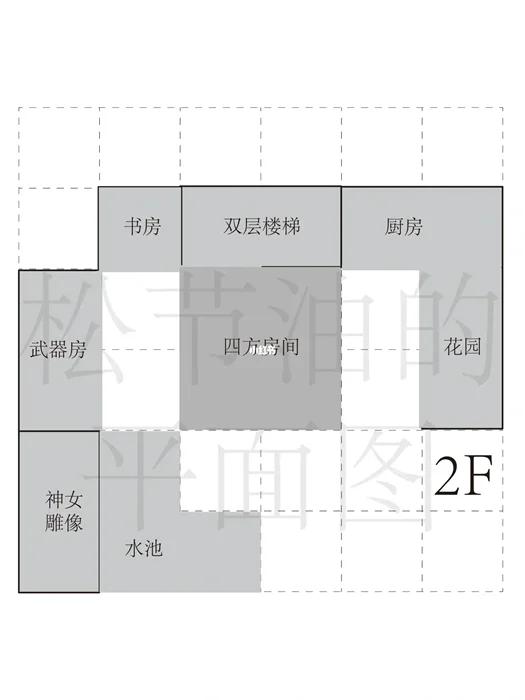 2F和3F的双层楼梯是一个组件,友友们别买多啦!一共用到的有:花园*2,武器房*3(各个种类一个),卧室*1,门*1,四方房*1,厨房*1,女神像*1,水池*1,马厩*1,双层楼梯*1,书房*1,户外楼梯*1