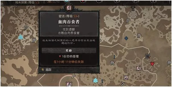 在秘语之树开启任务后,我们可以在地图中看见不少密语的任务,攒齐10个恐怖垂青就可以回秘语之树获得一次奖励。
