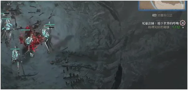 1、追踪任务后到达位置对话开启下一阶段打怪取得12个完好的头骨。