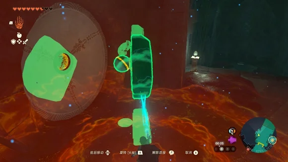 2、把石球通过究极手粘合浮空石传送到对面,再用究极手把石球跟浮游石粘合在一起,怼上墙壁的机关,解锁第4个水栓了。