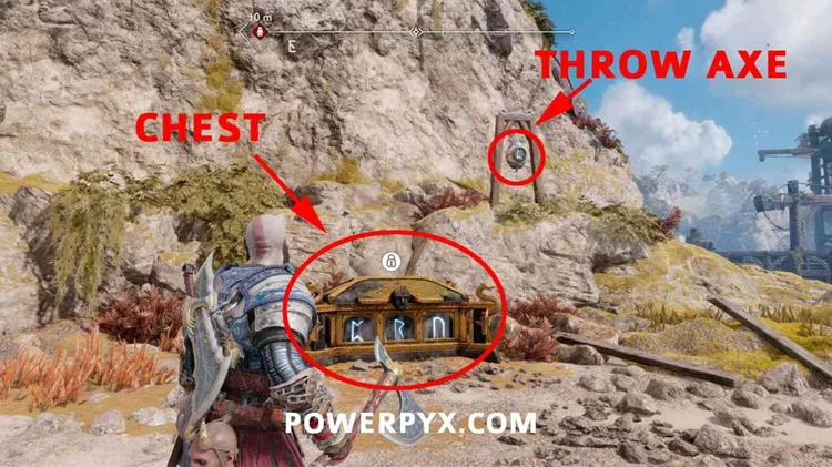 乘船到达大湖北部的阿尔贝里奇岛海滩。直接在海滩上,您可以找到诺尼尔箱。您必须快速连续将斧头投掷到 3 个字形封印处。他们都在海滩上。第一个是在海滩的左后角,将斧头扔向带有白色标记的木板,这将在金属条后面升起字形封印,快速取回斧头并将其扔向字形,然后再降下。第二个在海滩的左前方,向持有字形的木鹤射出绿色箭头,然后你可以用斧头击中字形。第三个是在胸部后面。由于定时事件的第一次投掷是最难的,因此最好从那个开始,然后快速击中其他两个。如果你花的时间太长,它会重置,你必须再次击中它们。
