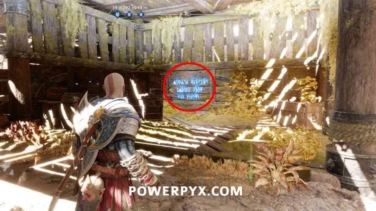 在粉碎地面后在该区域的底部发现。从乌鸦出发,右转并按下:圈:以用刀片拉下电梯。然后与右侧的轮子互动以降低抓斗点,将其仅比底部高一级(而不是最底部)。这使您可以踩到您降低的平台并摆动。然后用你的刀片:l2:+:r2:的火焰炸毁红色的桶,爬到地板的尽头,打开楼上的大门,放下并炸毁另一个红色的桶,然后在左后角你可以爬上去(木头上的白色攀爬路径标志指明了方向)。爬上去后,你可以砸穿地板:圈:,这把你带到楼下。砸穿地板后立即检查左侧墙上的蓝色字母,这就是传说。