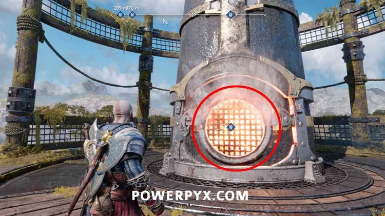 位于该区域的顶部。从传说中,使用中间平台上的链条将其抬起。现在爬回您转动轮子的区域的起点。按下:l-down:方向盘可将抓斗点提高一层(仅比最顶部低一层)。然后爬上左侧,在通往传说的路上打开了大门。从那里你可以跳到中间的平台,然后摆动到另一边,如果你用转动轮正确放置了抓钩。降落在另一侧后,爬上去,钻机就会在你面前。首先清除敌人以与之互动。