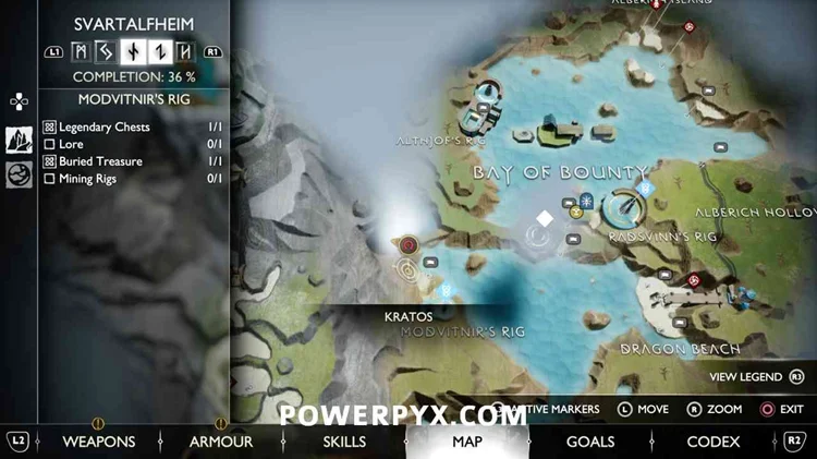 在海滩的起点,在右边,在爬上墙之前,检查地面上的金色光芒。要生成宝藏,您必须首先收集藏宝图,它来自在斯瓦尔塔夫海姆>阿尔贝里希山谷发现的传说卷轴收藏品。参见Alberich空心收藏品:#7传说(藏宝图-工业成果)。在Alberich Hollow中完成100%时,您将自动获得它。之后回溯到这里,宝藏就会在地面上发出金色的光芒。你总是需要先获得藏宝图,以便宝藏本身生成。