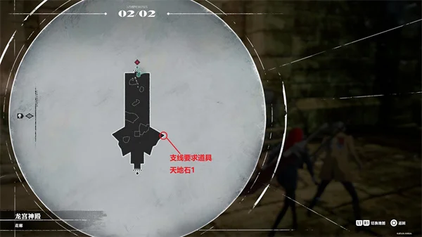 龙宫神殿入口走廊02/02,如图东侧的角能捡到【探求15:寻找引导人偶的材料】的任务道具:天地石1。