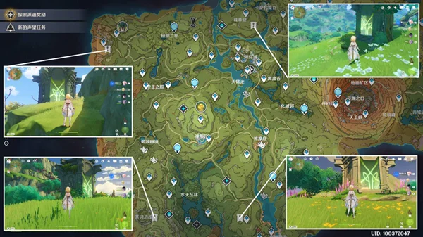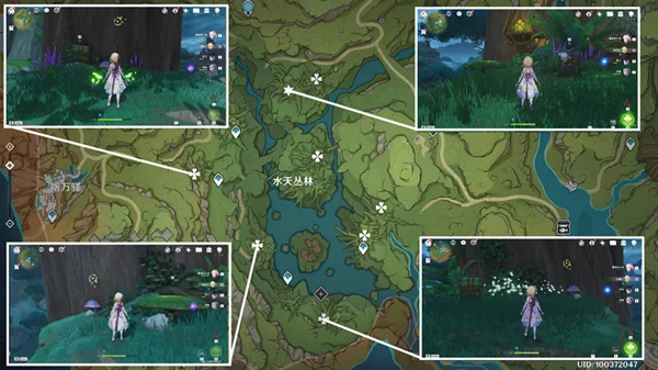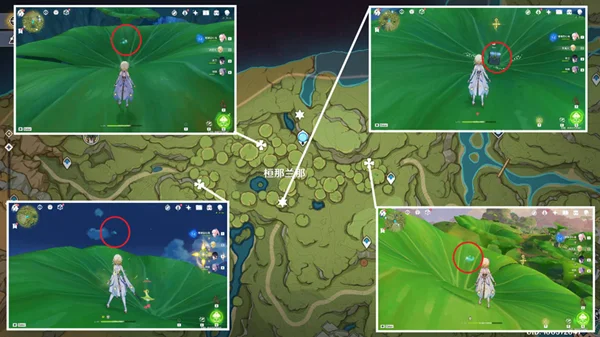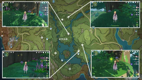我们需要在这七处(四叶草标记),用草元素催活蘑菇,点亮印记