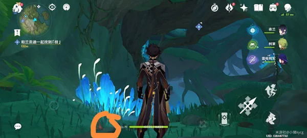 (传送到之后,跟着路走。在如图所示位置可找到洞口[四叶印记])