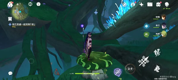 在如图位置使用蘑菇道具快速到达任务位置。(建议小队配备雷系角色,击打蘑菇,提高道具属性避免使用[蘑菇]飞不上去)