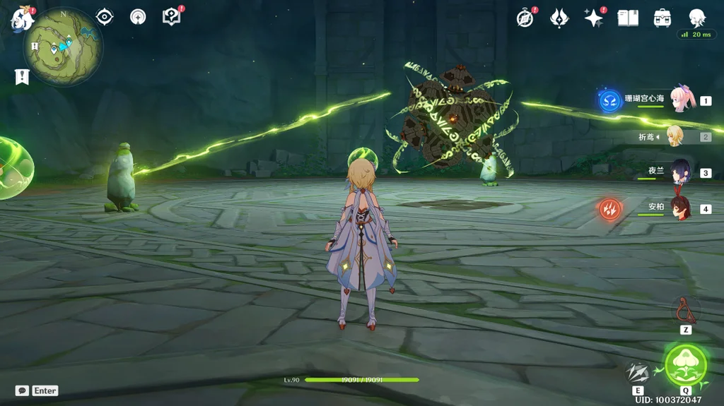 5,用火元素角色(安柏)攻击石锁,解除封印,再击败小宝