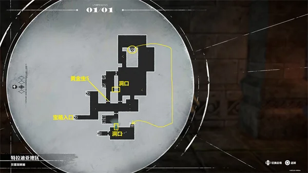 地下1层西南方的宝箱,里面是大马士革背心,这个宝箱需要从地下2层西南方向上的楼梯上来(如图宝箱入口那个楼梯)。