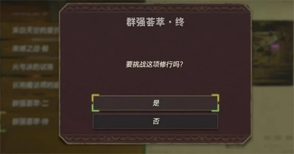 1、选择 【群强荟萃·终】 然后与图示NPC对话开启挑战;