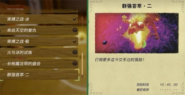 1、选择 【群强荟萃二】 然后与图示NPC对话开启挑战;