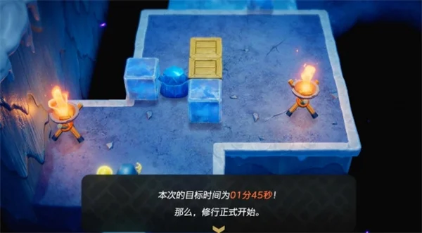 2、本次修行的目标时间为1分45秒,先同步面前的道具把它扔下去;
