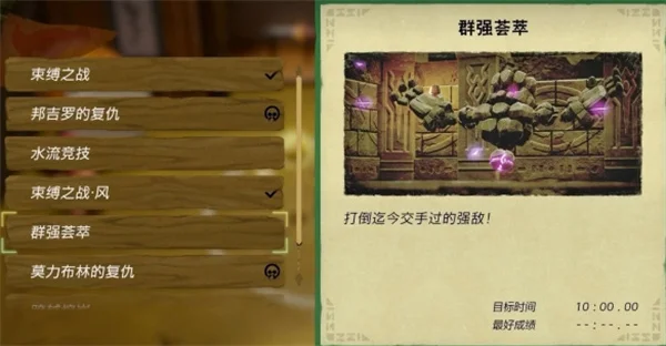 2、本次修行的目标时间为10分,玩家需要击败至今为止交手过的强敌;