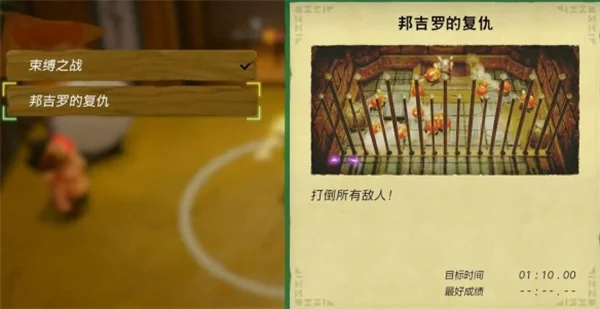 1、选择 【邦吉罗的复仇】 然后与图示NPC对话开启挑战;