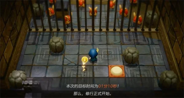 2、本次修行的目标时间为1分10秒,靠近前面的栏杆;