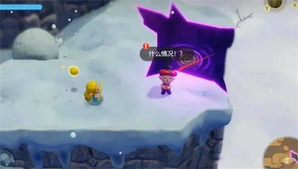 2、进入裂缝后往前方直走把冰块拉开找到 【伙伴1】 ;