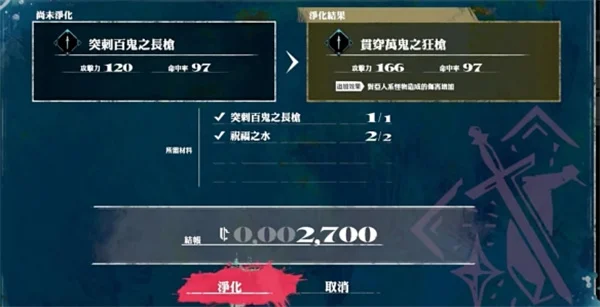 5、在教堂处净化【突刺百鬼之长枪】即可获得【贯穿万鬼之长枪】。