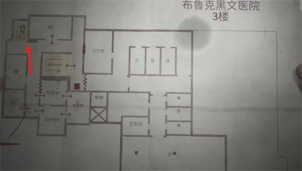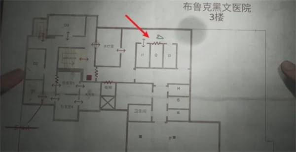 布鲁克黑文医院3楼楼梯处,使用楼顶钥匙打开锁住的门。