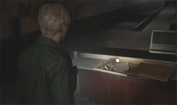进入球馆后会触发对话,深入球馆并和桌上未吃完的披萨互动以获取回忆。