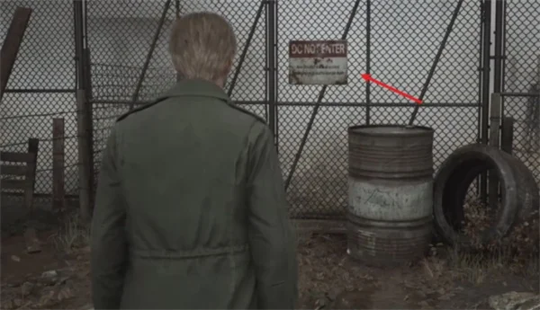 南谷东侧-法奇斯路,放有旧油桶的铁围栏上,与告示牌互动获得回忆。