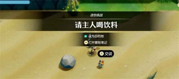 1、前往 【海滨村】 该任务需要穿猫咪服装,来到图示位置与猫对话触发迷你挑战【请主人喝饮料】;