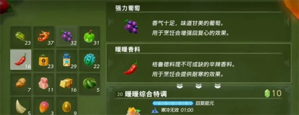 2、使用 【强力葡萄】+【暖暖香料】 制作冰沙 【暖暖综合特调】 ;
