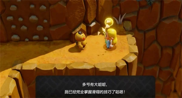 1、前往 【奥尔汀火山】 找图示NPC选择 【我来给你示范】 触发迷你挑战【教教我吧滑翔兜风】;