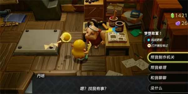 2、出示 【魔鸦】 给丹培然后选择 【制作机关】-【梦想致富】 ;